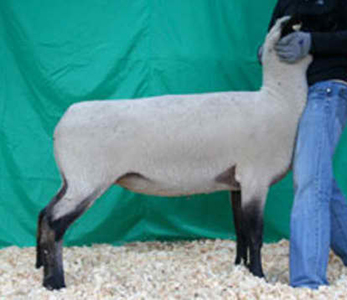 Y-504 is double bred O-964, one of Miller's most coveteted bloodlines since his untimely death during his first breeding season. Out of his 25 ewes that lambed, he had three stud bucks, Dynasty, Classic and O-157, 30 kept females, and Reserve Grand at Houston. She has had three females; one that we've sold and two we have retained. Bred back to Masterpiece, these line bred lambs have a tremendous amount of potential. |